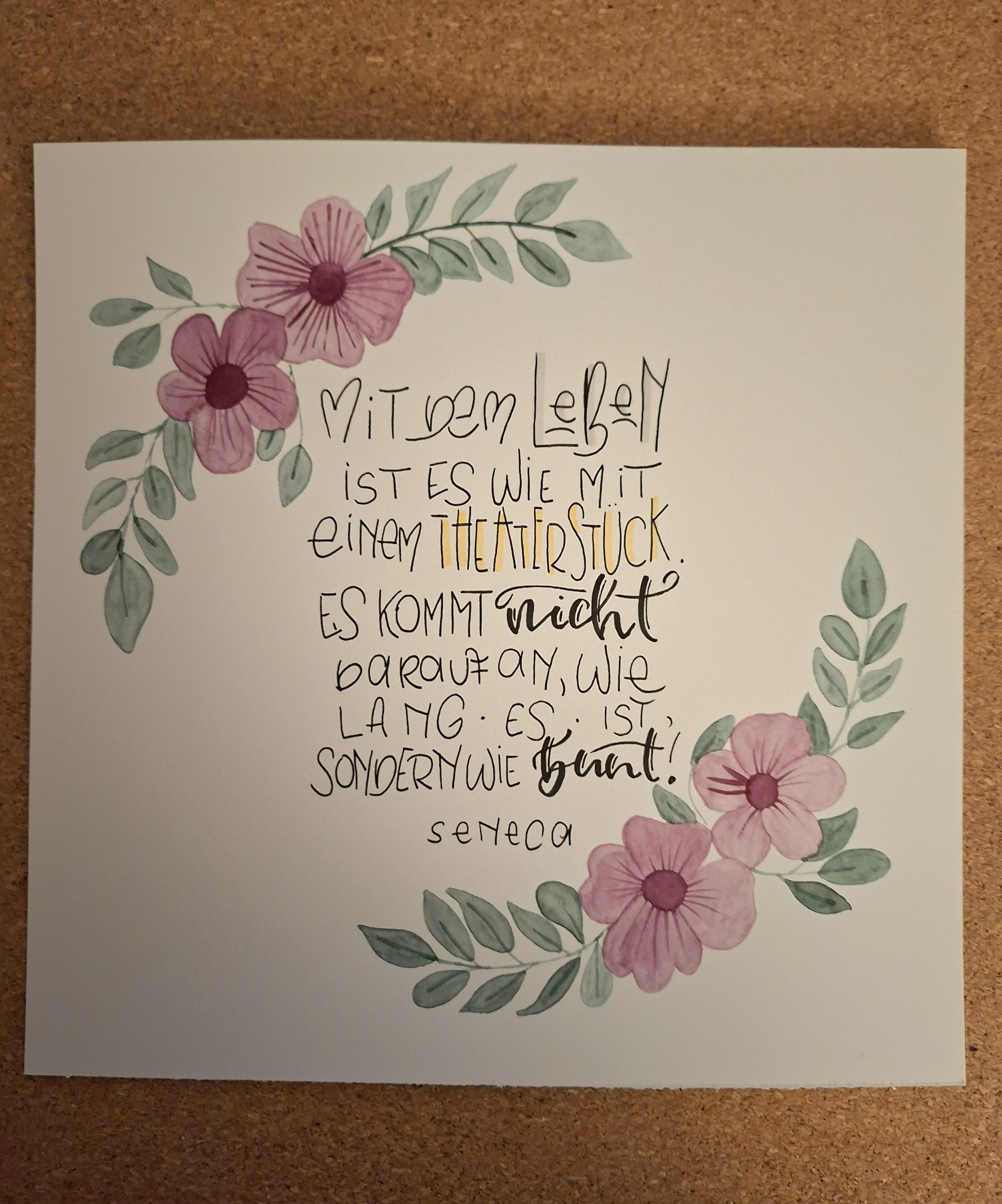 Auf Instagram habe ich immer die tollen Weisheiten in schönen Buchstaben kalligrafiert gesehen. Dies wollte ich auch unbedingt ausprobieren. Ich habe mir ein ansprechendes Zitat einer meiner Lieblingsautoren ausgesucht. Doch dann saß ich vor meinem leeren Blatt…